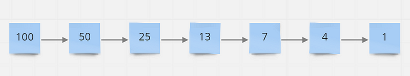 利用將資料切一半的方式來做搜尋,舉例來說,如果要從數字 1–100 猜終極密碼 ,很不幸的數字剛好是 99 就需要猜 99 次,但如果用二元搜尋法就會是先判斷數字是否大於 50 ,那是否大於 75 ,依此類推每次都用對半砍的方式縮小範圍,最後只需要猜七次就能猜出終極密碼。