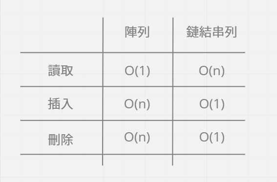 鏈結串列在存放每個元素的同時 ,也會記錄下一個元素存放的位置,但假設今天想要取得鏈結串列的最後一個元素時 ,就必須從第一個元素開始讀取, 逐一讀到最後一個。