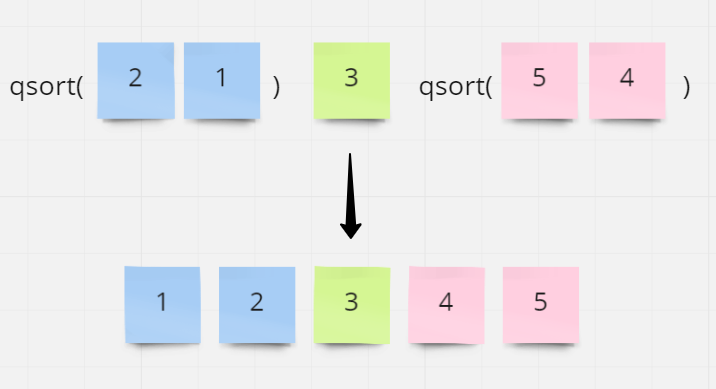 若 A or B 陣列長度大於 1 ,則再次呼叫 qsort 函式(遞迴),最後將[比基準小的陣列] 、基準值、[比基準大的陣列]依序組合起來就是排序過後的陣列。