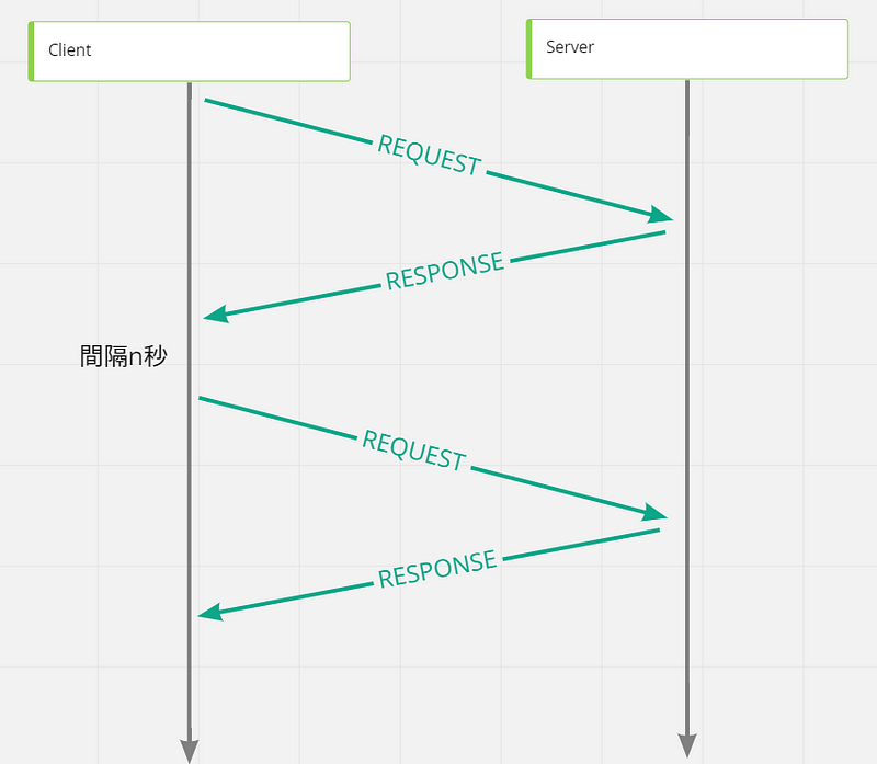 以上述例子而言, 就叫做Polling,簡單來說就是每隔一段時間就發送請求給 Server 端 (利用 JS 的 setTimeout or setInterval 來達成),以確保 Client 端可以拿到新的資料 ,早期都是用這種方式來即時更新資料,不過缺點是頻繁的請求 ,而每次的請求又未必有資料更新, 就會浪費 Client 端的網路資源了。