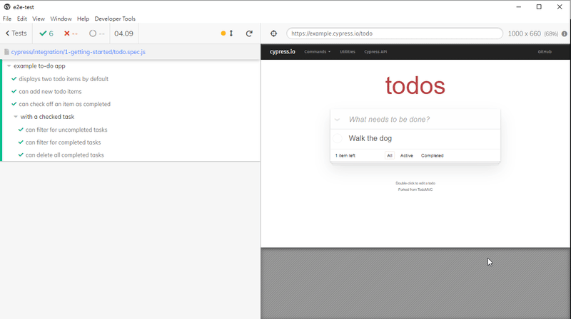 打開 cypress 視窗,會發現 cypress/integration 資料夾底下已經放了一些範例用的測試程式碼,可以隨便點一個進去看看