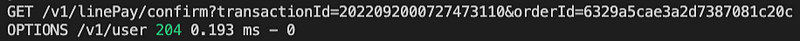 成功付款之後,LinePay 就會轉址到後端 server 的 /linePay/confirm,並且在 url 後面帶上 transactionId 和 orderId,通知後端使用者已經完成付款