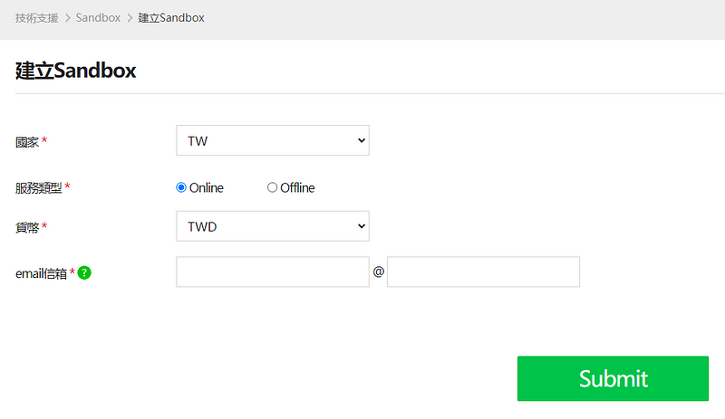 - 先建立 sandBox 帳號,👉 這裡申請