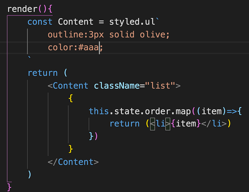 styled.button 就等同於 style.button()可以把它想成是 es6 的樣板語言會比較好理解