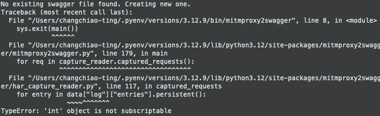 接下來換 mitmproxy2swagger 接手,先安裝 mitmproxy2swagger,若不想安裝 python,也可以使用官方提供 docker image 來建立虛擬環境,省去安裝 python 的麻煩