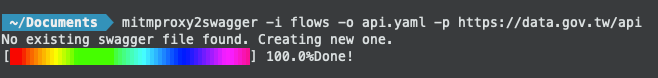 mitmproxy2swagger -i flows -o api.yaml -p https://data.gov.tw/api