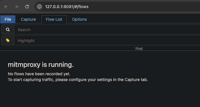 安裝好之後可以選擇用 command line 的方式或是 web GUI 的方式來操作mitmproxy,為了更直觀的展示 mitmproxy 的功能,這裡選擇用 web GUI 的方式,執行以下指令