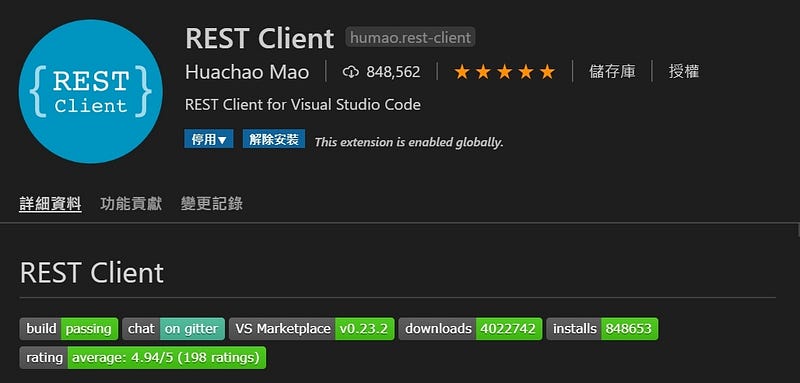 說到測試 api 的工具第一個想到的當然就是 Postman,不過最近發現有一個 vscode pluging 叫做 REST Client 也可以做到同樣的事,而且使用方式也很簡單,推薦大家可以用用看。