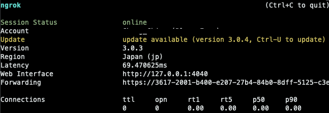 設定完 token 之後就可以開始使用 ngrok 的服務,假設我們在本地起的專案是 3000 就可以執行下面的指令
