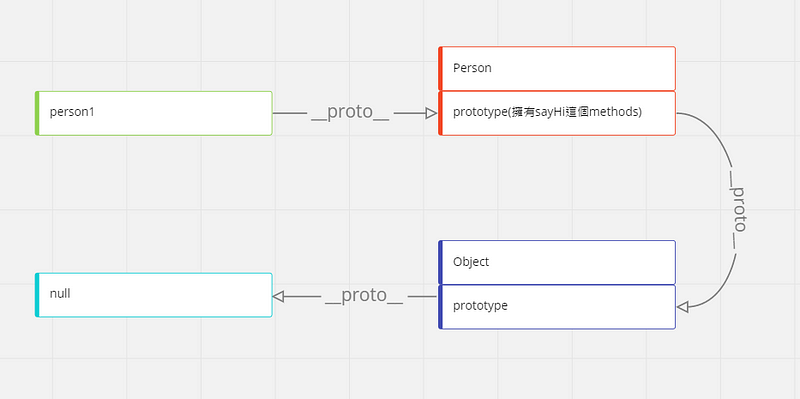 4.如果 Person 的 prototype 也沒有 sayHi 方法就再往上找查找,直到找到最上層_Object.prototype.__proto___ (_null_)就會終止