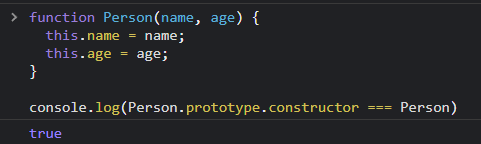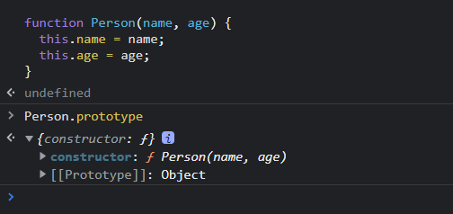prototype 會是一個物件,裡面會有 constructor 屬性,有趣的是 constructor 是指向 Person 本身