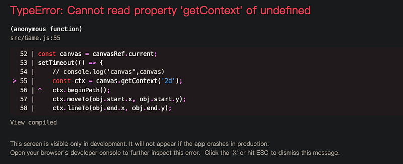 利用 useRef 來抓 dom 裡的 canvas,殊不知一直抓不到 !! 一直是 undefined ,這時候推斷是雖然我即時將 canvas 更換為顯示的狀態,但是因為非同步的關係,下一行的 canvasRef.current 此時還是 undefined 狀態