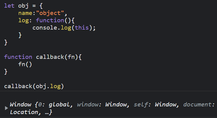 將 obj 的 log 方法當作 callback function 傳入,this 預期應該要是 obj,怎麼會是 window ? 因為 callback 這個函式是定義在 window 底下,由 callback 去呼叫 obj.log,this 的指向就會變成 window,但這絕不是我們想要的,為了解決這個問題,接下來要介紹 bind