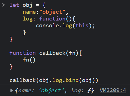 bind 的功能就是將原本物件的 this 跟指定的物件做綁定,使用 bind 來綁定物件並不會馬上執行,而是會回傳一個函式,執行函式的當下會改變 this 的指向,讓我們用 bind 來改寫上面的函式,將 log 方法綁定 obj 物件後,this 就會是預期的 obj
