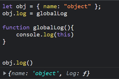 將全域的 globalLog 函式指定給物件的 log,由於呼叫函式的對象是 obj,因此 this 指向的是 obj 本身