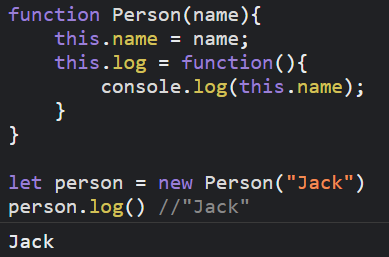 使用建構函式 new 出來的物件,this 的指向就會是該物件,因此印出的 this.name 就會是 Jack,如果想要探究建構函式做了哪些事情,建議可以閱讀這篇