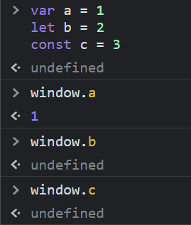 額外補充一點,如果是用 var 宣告的變數,會被定義到 window 上,let 和 const 則不會有這問題