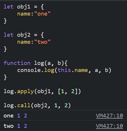 apply 和 call 都可以傳入兩個參數,第一個參數就是物件,目的是將該函式的 this 綁定成該物件,兩者的差異在於第二個參數,apply 接收一個陣列為參數,call 則是接受多個參數