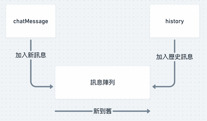 接下來監聽 history 如果拿到歷史訊息, 就將後端回傳的訊息加入到現有的訊息陣列前方