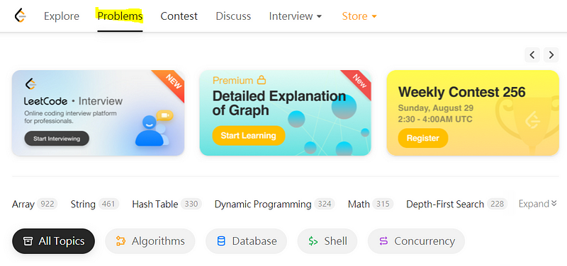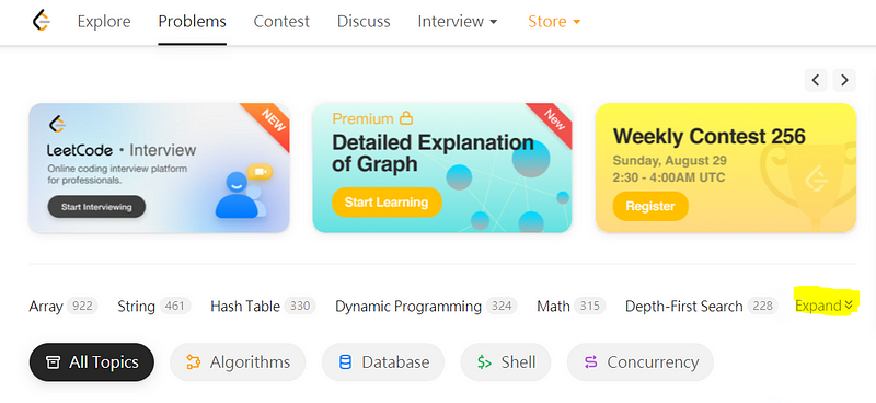 leetcode 很貼心依照題型做分類,這邊選擇 expand 可以看到更多分類。
