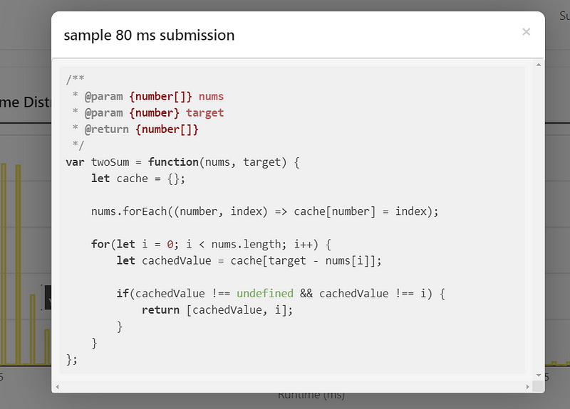 點擊柱狀圖的話,會跳出一個彈窗,顯示那個時間區間提交的程式碼內容,這時候就可以參考一下別人的寫法為甚麼執行效率比較好。