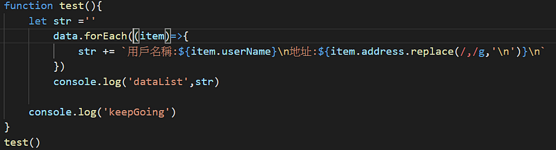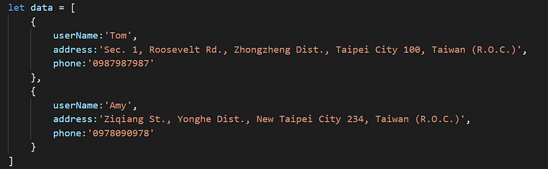 假設我想要針對每筆資料的 address 做簡單處理(用換行字符取代逗號),程式碼如下圖