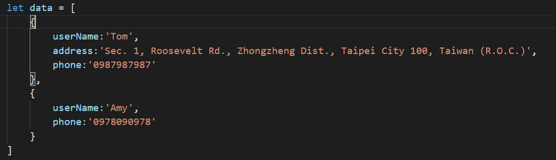 今天就舉例一下工作上什麼樣的情境會用到 try catch,假設有段程式碼是在處理後端回傳的資料 ,但有機率性的這隻 API 並不會像我們預期的那樣回傳正確的資料格式,以我曾經遇到的狀況是陣列裡面有數十個物件,但有幾個物件少了 Key,這樣描述聽起來有些抽象,直接看資料應該會比較清楚。